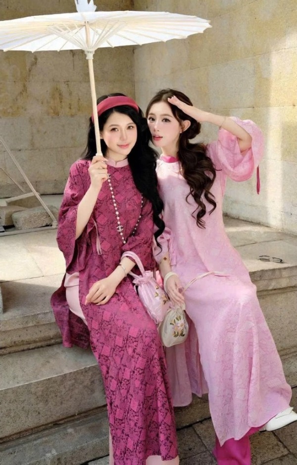 Xu hướng áo dài cách tân kết hợp chất liệu xuyên thấu đang được nhiều nhà thiết kế khai thác tinh tế. Những mảng vải mỏng nhẹ, semi-sheer tạo cảm giác thoáng mát, uyển chuyển khi di chuyển, đồng thời vẫn giữ được phom dáng truyền thống. Kiểu áo này phù hợp cho cả việc chúc Tết, đi chơi đầu năm hay những buổi tiệc xuân nhẹ nhàng, giúp người mặc trông vừa hiện đại vừa nữ tính.