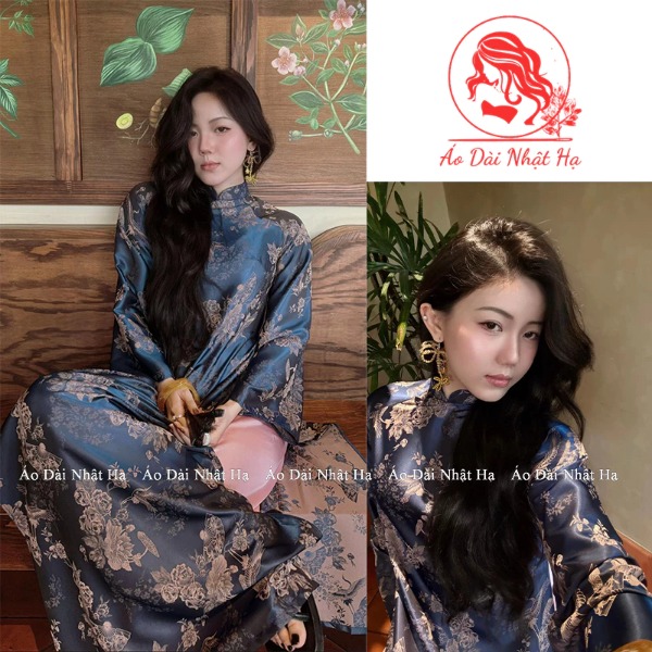 Mẫu áo dài này gây ấn tượng với chất liệu gấm Huyền Vân cao cấp, họa tiết dệt tinh tế mang hơi thở truyền thống. Dáng suông hai tà giúp tổng thể thanh thoát, dễ mặc và phù hợp với nhiều vóc dáng. Tông lam trầm mang lại cảm giác hoài cổ, sang trọng, rất lý tưởng cho những ai yêu thích áo dài Tết theo phong cách nền nã, tinh tế.