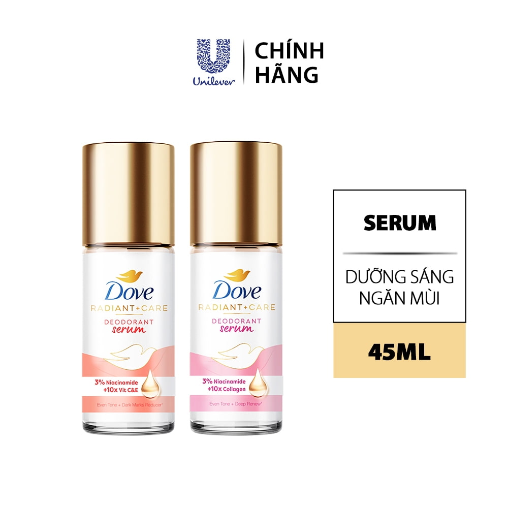 - Lăn khử mùi nữ Dove tinh chất serum 3% Niacinamide & 10x Collagen làm mịn, sáng đều màu da dưới cánh tay.