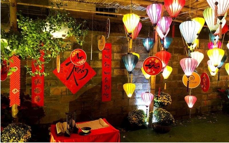 Trang trí không gian với đèn lồng và ánh sáng ấm áp