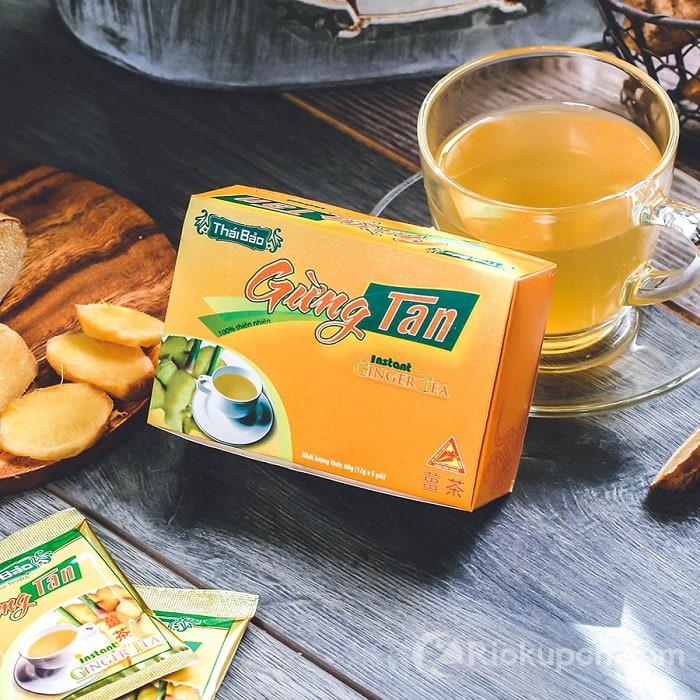 Trà gừng chứa nhiều Vitamin C, Axit Amin, Kẽm, Canxi, Phốt pho,… nên khi sử dụng trà gừng mỗi ngày giúp cải thiện hệ tiêu hóa, tăng cường miễn dịch, giảm đau đầu, ngăn ngừa ung thư,… Bạn có thể thay thế cafe bằng trà gừng vào mỗi buổi sáng vì những tác dụng mà nó đem lại cho sức khỏe. Hãy cùng Riokupon tìm hiểu những thông tin cần biết về trà gừng hòa tan ngay dưới bài viết sau.