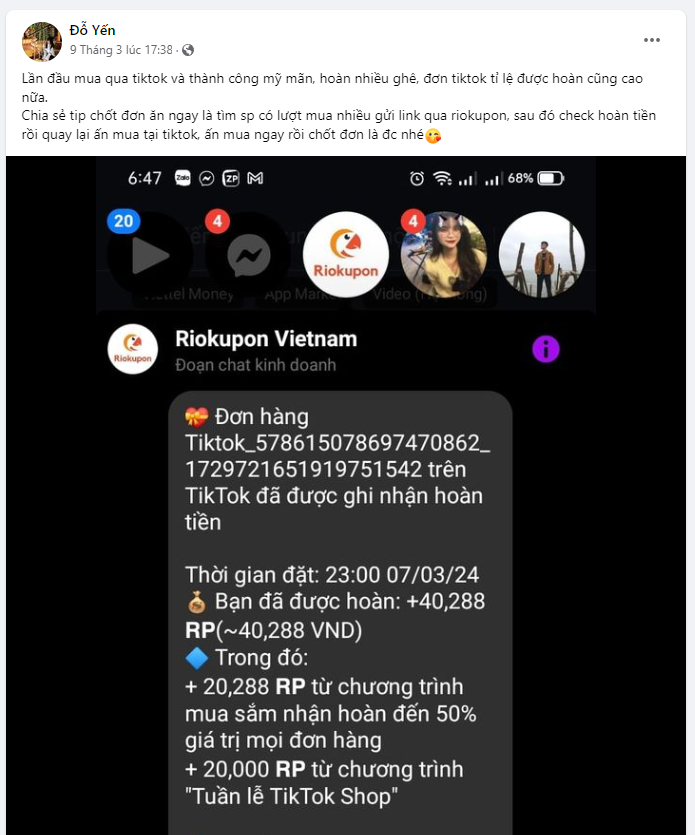 Hướng dẫn chi tiết cách mua sắm trên TikTok nhận hoàn tiền cùng Riokupon