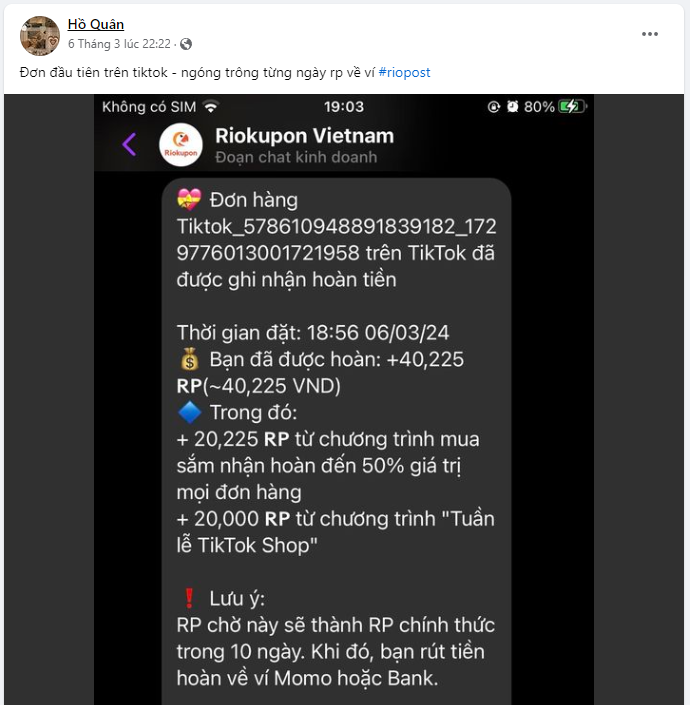 >> Xem chi tiết các thành viên đã mua sắm và nhận hoàn tiền thành công qua Riokupon: