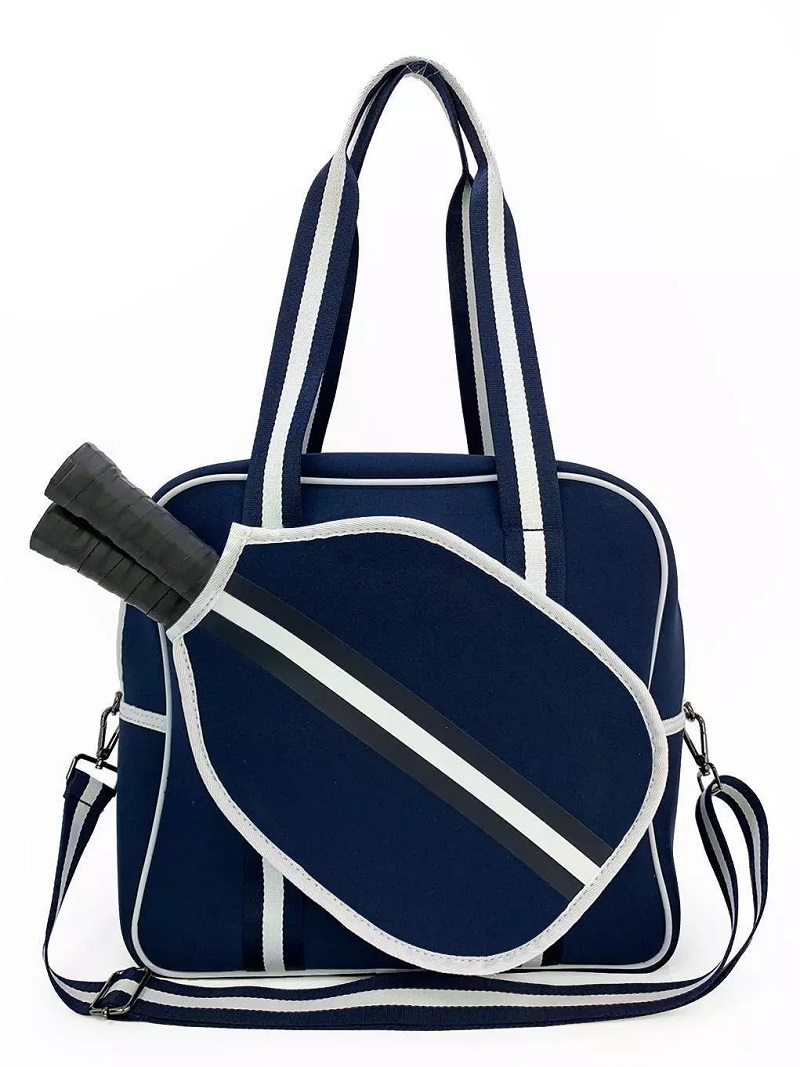 Túi tote dành riêng cho người chơi tennis và Pickleball, thiết kế thanh lịch và tiện dụng. Túi có kích thước vừa phải, phù hợp để đựng vợt và các dụng cụ cần thiết.
