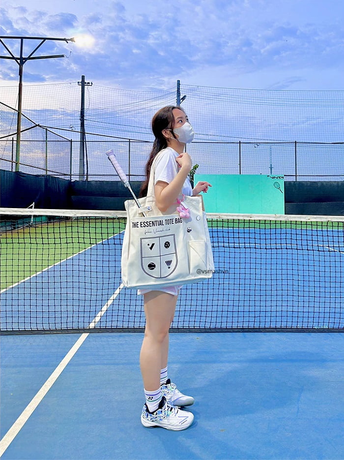 Túi tote này là mẫu túi đa năng, có thể sử dụng cho cả ba môn thể thao phổ biến: cầu lông, tennis và Pickleball. Thiết kế rộng rãi, tiện dụng với quai xách chắc chắn và phong cách hiện đại.