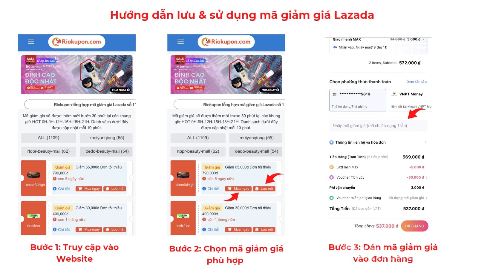- Bước 1: Truy cập website Riokupon Vietnam - Riokupon.com. Trang web sẽ giúp bạn tổng hợp toàn bộ mã giảm giá của các thương hiệu, các shop trên Lazada. Đặc biệt có cả những mã giảm giá độc quyền mà bạn không thể tìm thấy được ở bất kỳ nơi nào khác.