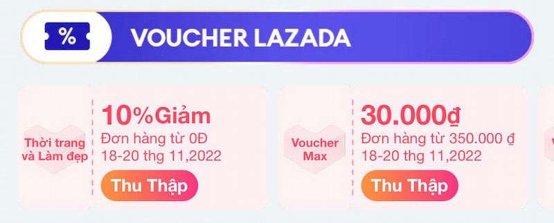 Mã giảm toàn sàn và mã freeship Max: Là mã giảm được phát hành bởi Lazada và sử dụng để giảm phí vận chuyển hàng.